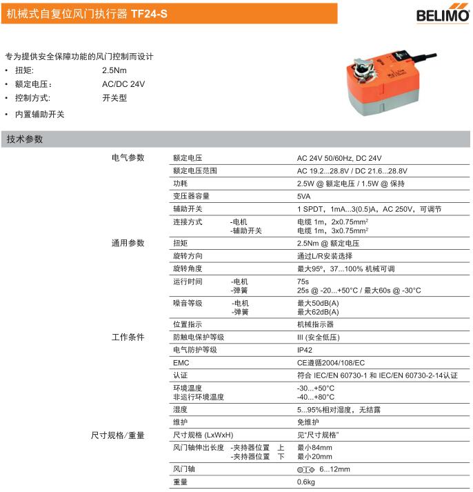 • TF24機(jī)械式自復(fù)位風(fēng)門執(zhí)行器