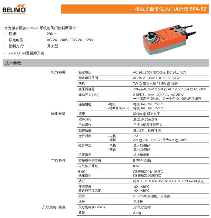 • SFA機(jī)械式自復(fù)位風(fēng)門執(zhí)行器