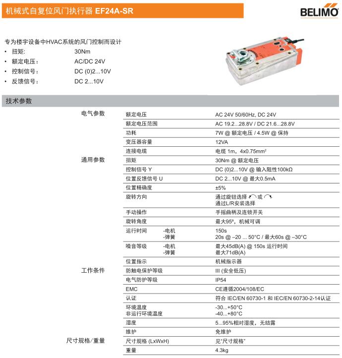 • EF24A機(jī)械式自復(fù)位風(fēng)門執(zhí)行器