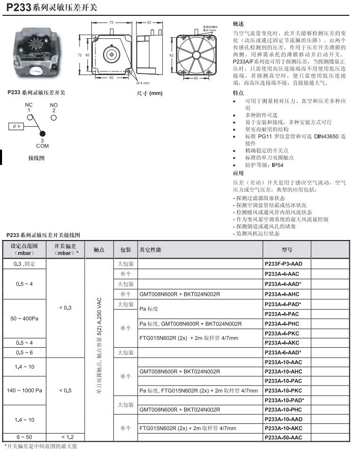 • P233濾網壓差開關