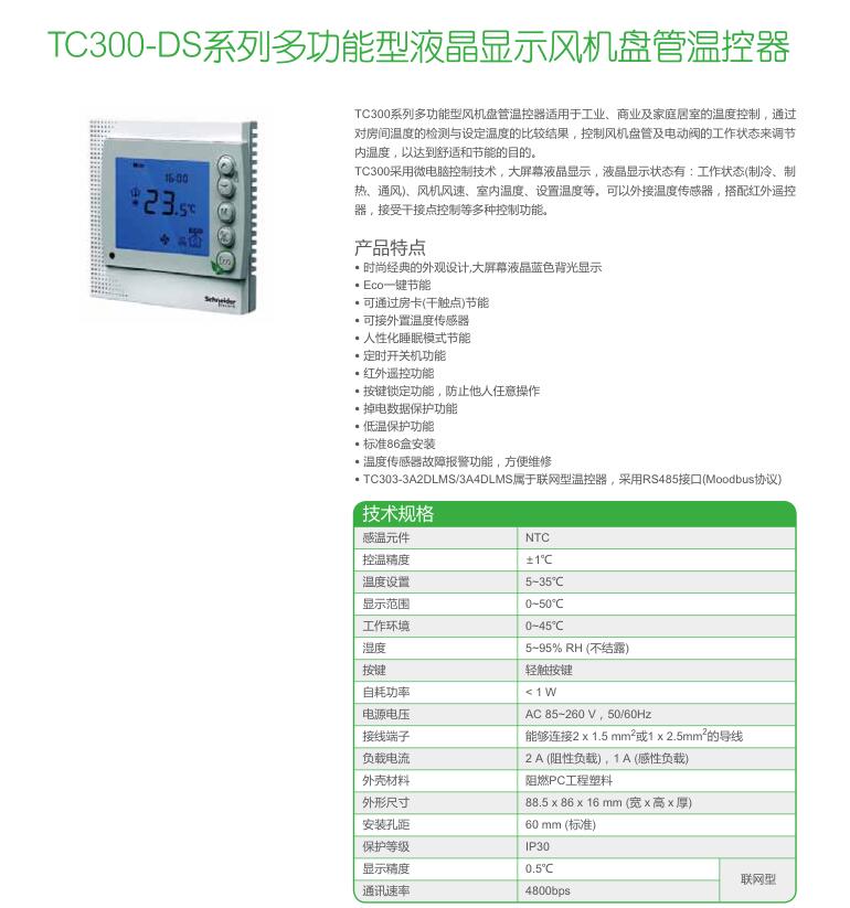 • TC300-DS系列多功能型液晶顯示風(fēng)機(jī)盤(pán)管溫控器