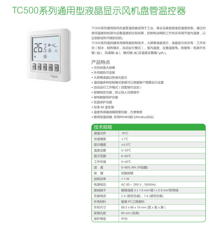 • TC500系列通用型液晶顯示風(fēng)機(jī)盤(pán)管溫控器