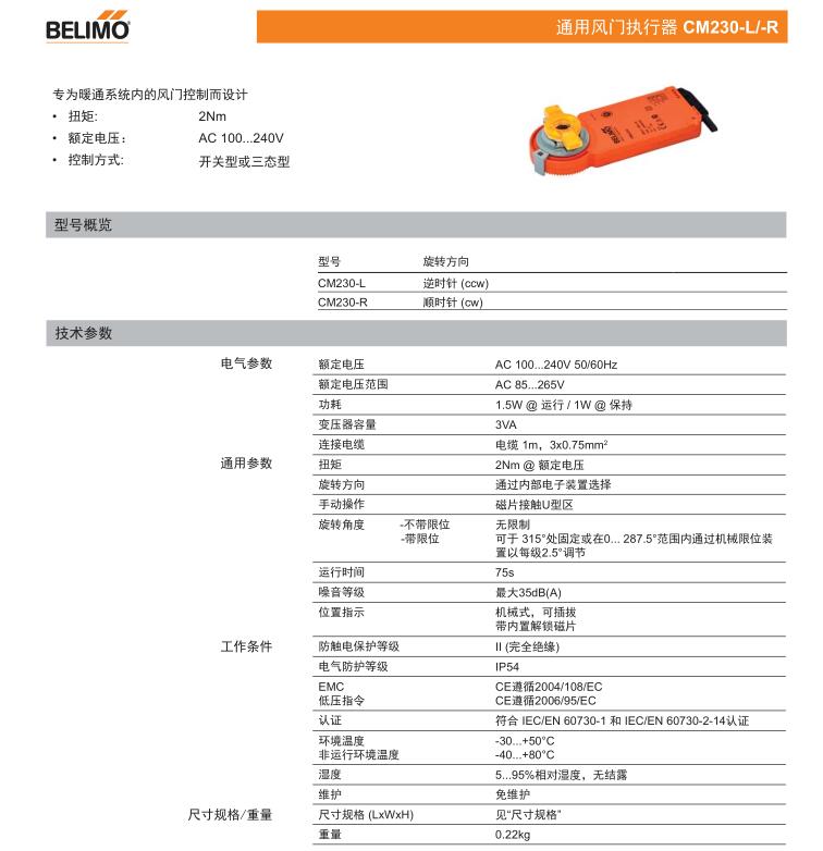 • 通用風(fēng)門(mén)執(zhí)行器CM230-L/R